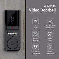 trenzu Smart WiFi Video Doorbell | Calling Ring Door Bell Wireless | Two-Way Audio, HD Resolution, Night Vision, Motion Detection, Long Battery Life, App Control, Front Door Bell with Camera - Black